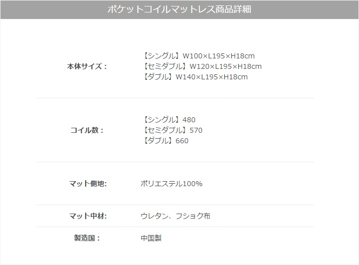 M6073 薄型三つ折りポケットコイルマットレス 10cm